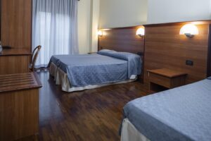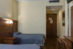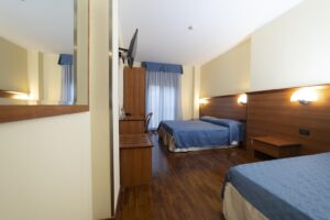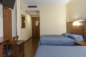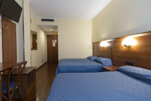 Camera tripla climatizzata e insonorizzata con minibar e parquet in legno, dotata di 1 letto matrimoniale e 1 letto singolo. L'intera unità è situata al piano terra. Parcheggio privato disponibile gratuitamente in loco senza prenotazione.